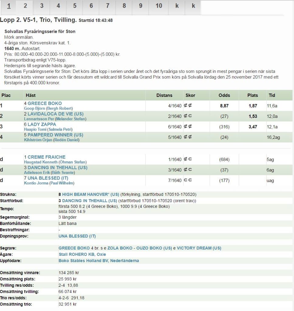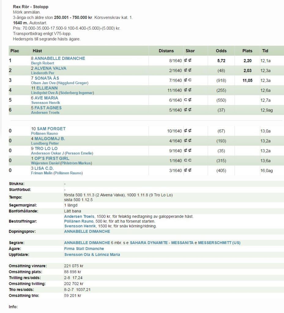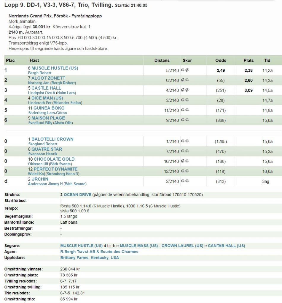 Robert Bergh hade en framgångsrik onsdag. Förutom vinster genom Muscle Hustle och Annabelle Dimanche segrade även Greece Boko på Solvalla. Onsdagen inbringande nästan 250 000 kr inkört till Stall Bergh.