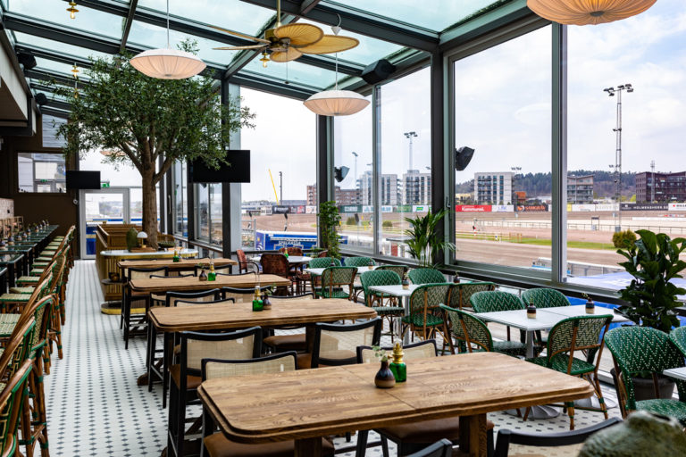 - Vill man se travtävlingarna samtidigt som man äter mat så är det Orangeriet man skall boka.