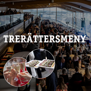 Beskrivning: Starta din dag med en välkomstdrink och läckra canapéer vid ankomst, en perfekt start för att komma i rätt stämning inför tävlingarna. Därefter bjuds ni in till vår restaurang Pegasus, där ni har de bästa platserna i huset – med panoramavy över banan!