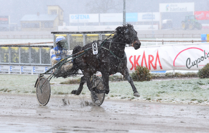 Tredje Åbysegern togs när Henna Halme styrde Joyride Cane till seger i snöovädret. Joyride Cane satt en bit ner i kön, framåt dryga varvet kvar, slank ner ui andra utvändigt, svarade attack från kön 700 kvar, till spets 100 meter senare, fick press, ryckte undan över upploppet och vann lätt. Det var 25 000 kronor till vinnaren och det är Satu Laakso & Valley Media OY.