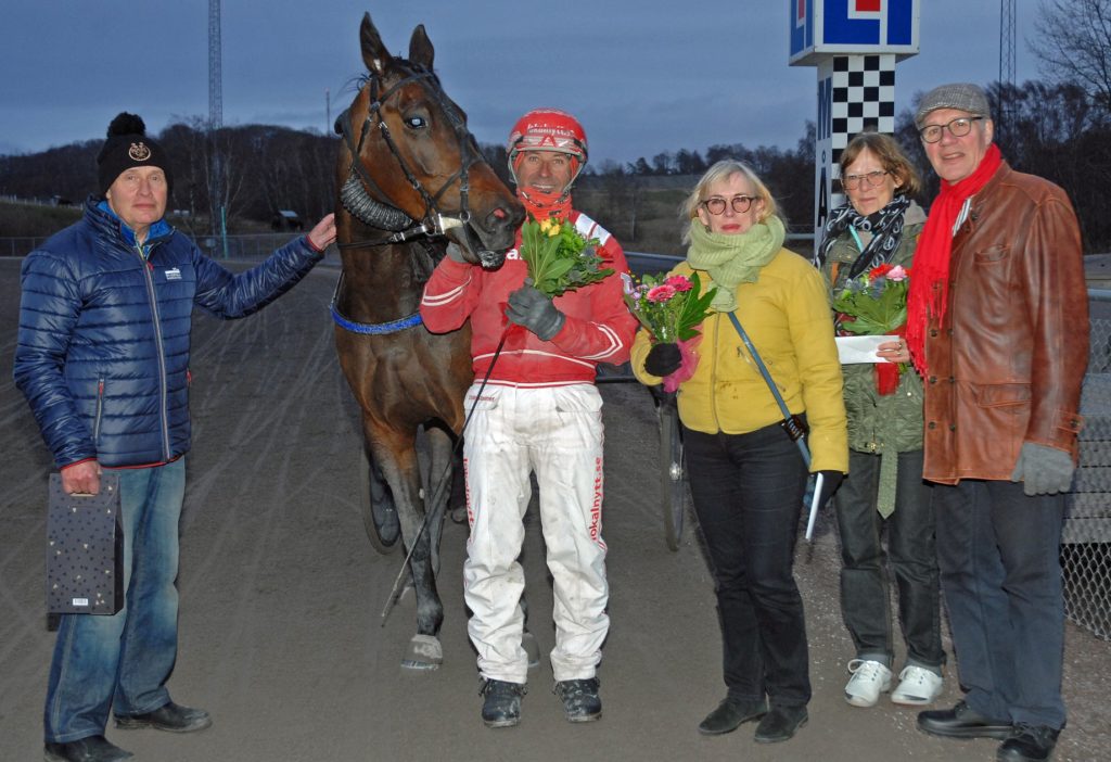 Helén och Henrik Blomberg tog årets första tränarseger när Oscar Flax vann sitt första lopp i karriären. Körande Stefan Persson körde till spets och fick sedan köra loppet precis som han ville. Segertiden blev 1.19,0/2140 och förstapriset var 30 000 kronor.