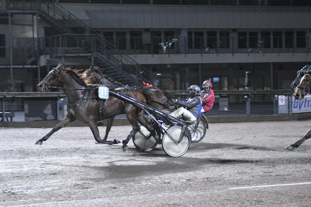 Det fortsatte i samma stil. Robert Bergh hittade andra ytter i ett galoppfyllt stolopp (V64-4) med Lovely O.O. (e. Love You) och avgjorde väldigt enkelt mot ledande favoriten Mellby Hawaii redan i utgången av sista kurvan. Segertiden stannade vid 1.14,3a/2140 meter och det handlade om tredje segern i elfte starten för det här fyraåriga stoet.