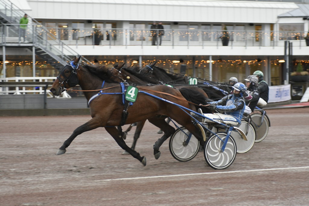 Henna Halme tog årets första seger när Corleone D.K. vann på lunchtravet. Henna körde till ledningen efter knappa 350 meter och körde sedan ett bra lopp efter klockan. Segern var värd 30 000 kronor och segertiden blev 1.15,4/2640 auto.