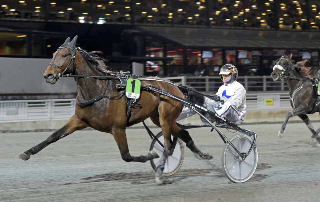Bergh hade skickat Caligula (e. Coktail Jet – Jungle) till Solvalla och denne hade i ledningen hela vägen på 1.14,0a/2.140 inga problem för Per Lennartsson; fjärde raka segern och den femte på sex starter i år. Ecurie Etoile Sweden HB i Sundsvall äger hästen.