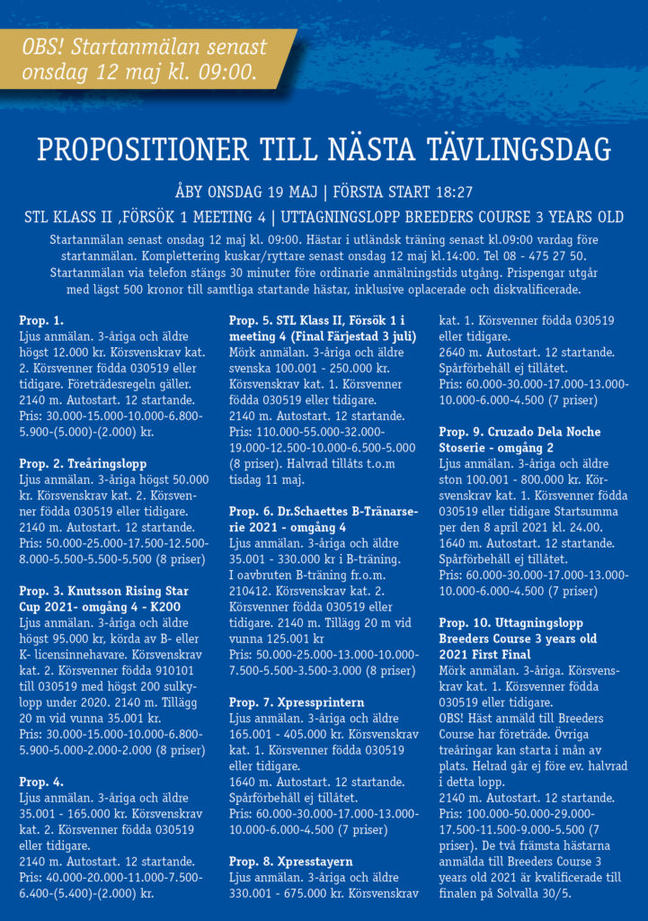 Glöm inte att anmäl till nästa veckas tävlingar redan på onsdag den 12/5